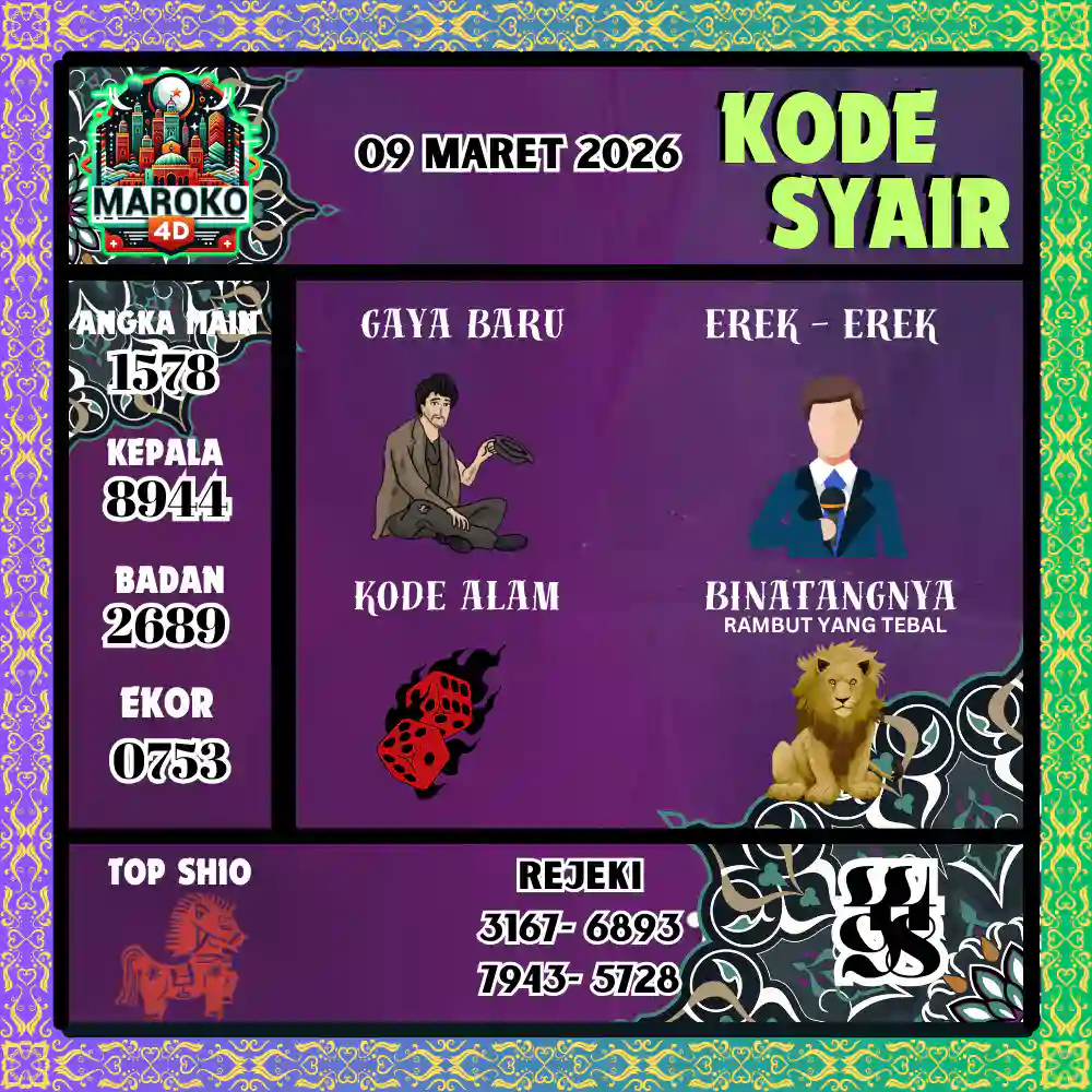 Kode Syair Maroko4D Pools 09 Maret 2026