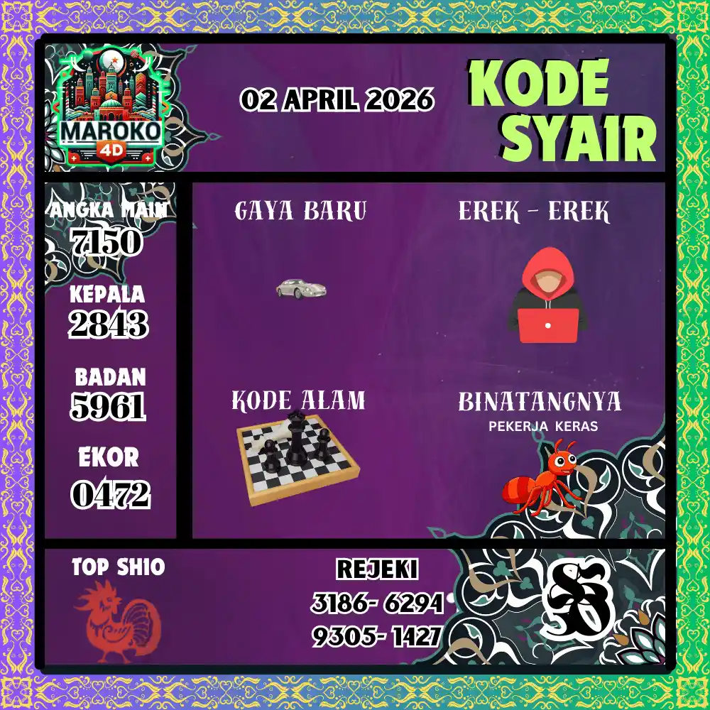 Kode Syair Maroko4D Pools 02 April 2026